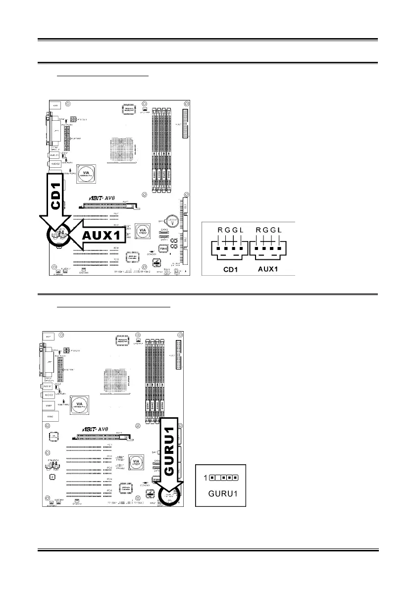 Abit AV8 - Internal Audio Connectors; GURU Clock Connection Header