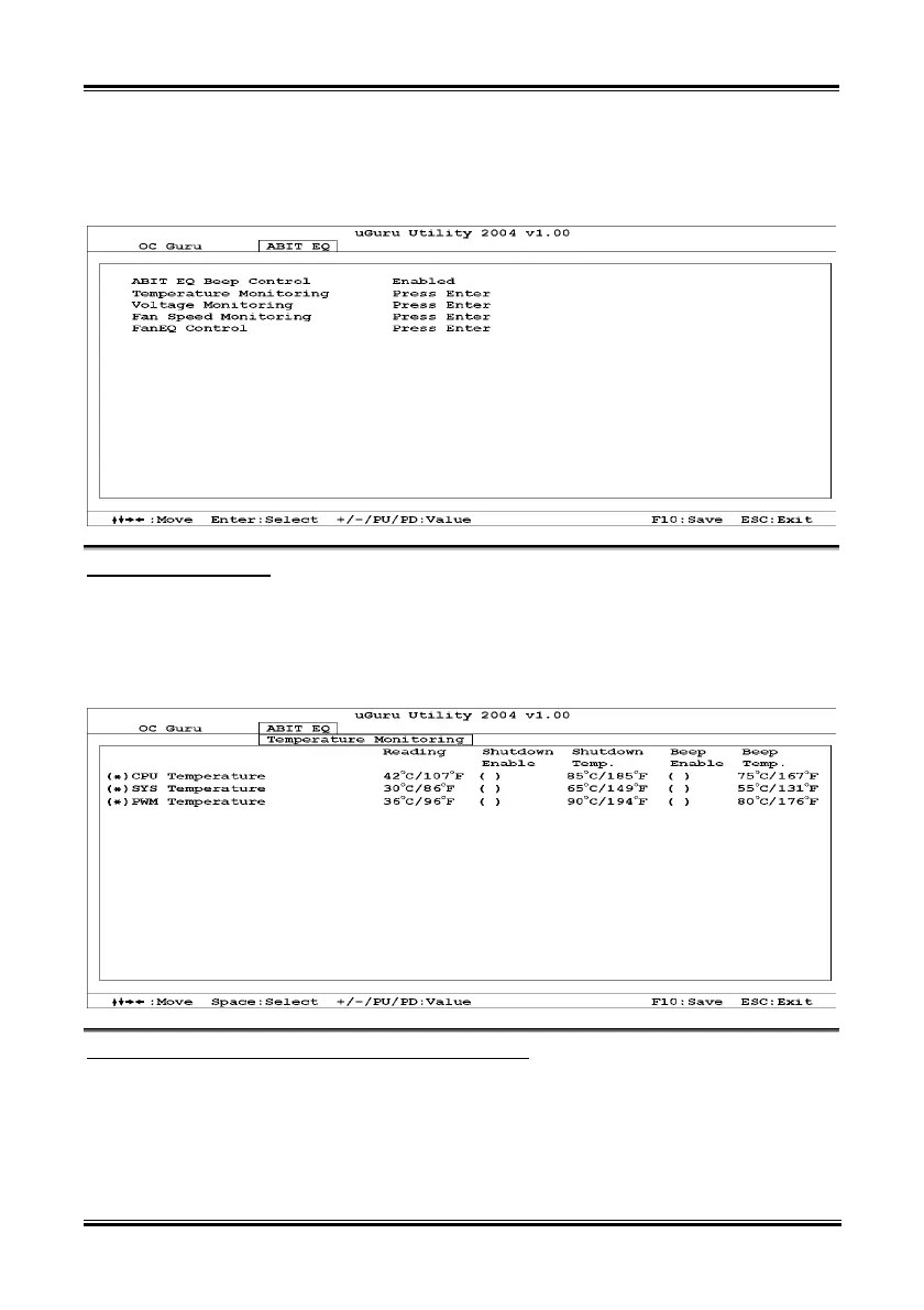 Use <→> key to switch from OC Guru setup menu to ABIT EQ setup menu: