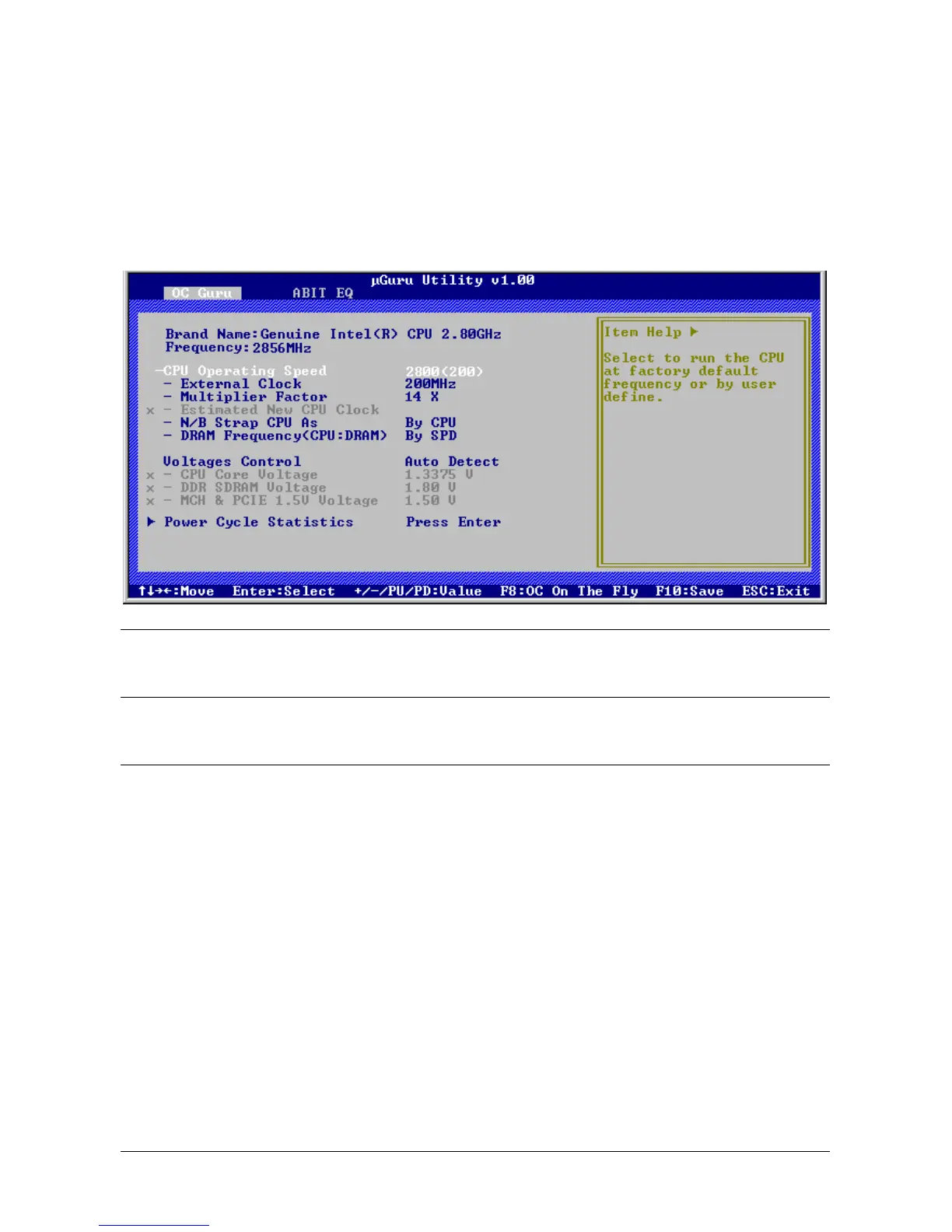 There are two setup menus in this µGuru utility. You may switch between these two by clicking