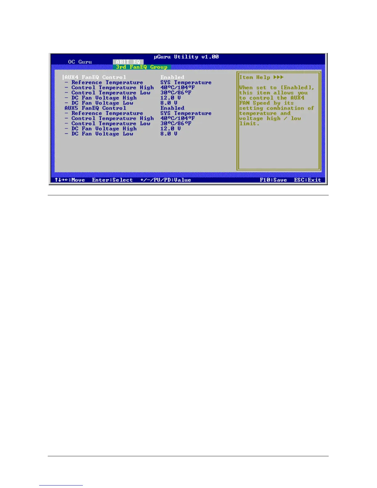 When set to [Enabled], these items control the AUX4/AUX5 fan speed by the following setting