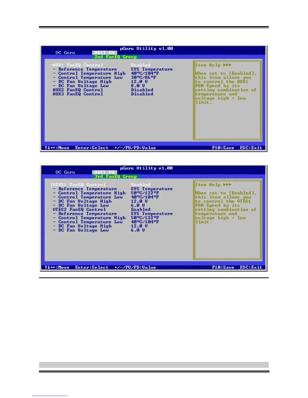 When set to [Enabled], these items control the AUX/OTES fan speed by the following setting
