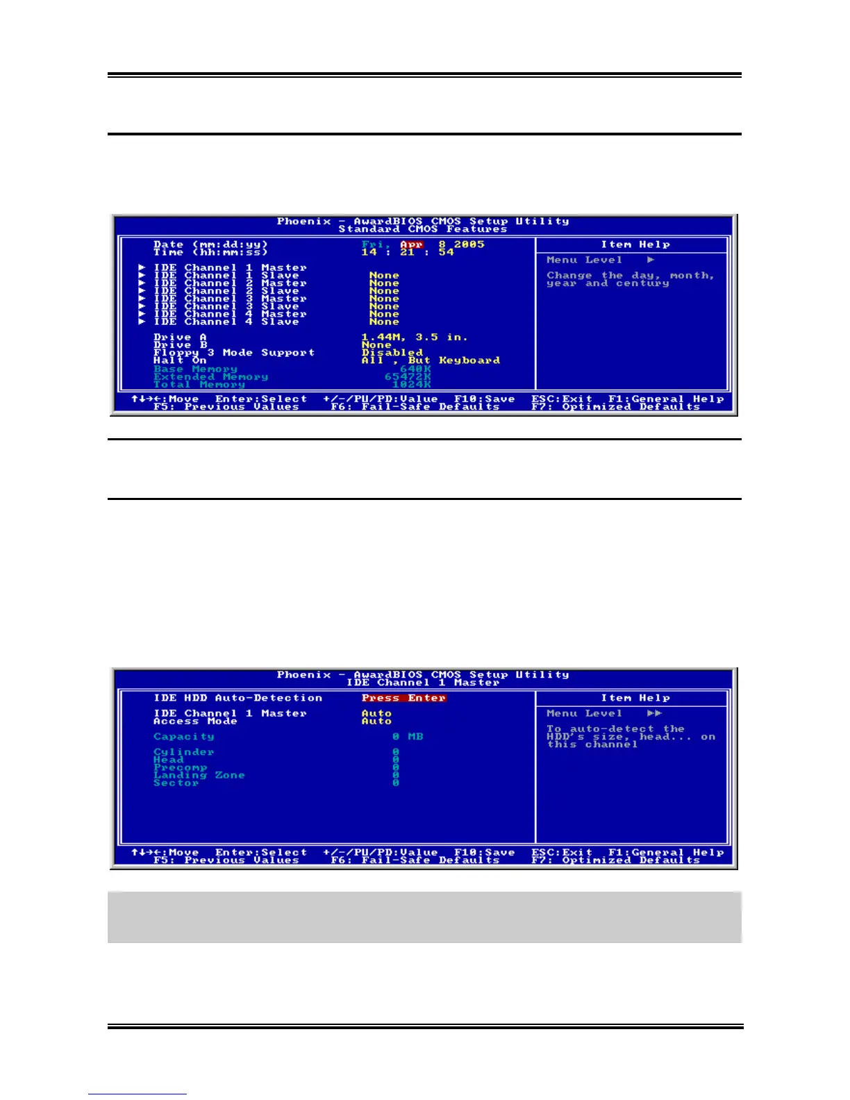 NOTE: The items “IDE Channel 3 Master/Slave” and “IDE Channel 4 Master/Slave” appear only when
