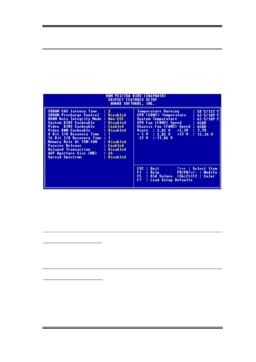 The Chipset Features Setup Menu is used to modify the contents of the buffers in the chipset