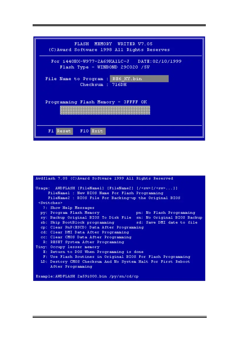 Figure A-2. Award Flash Memory Writer V7.05 Complete Screen