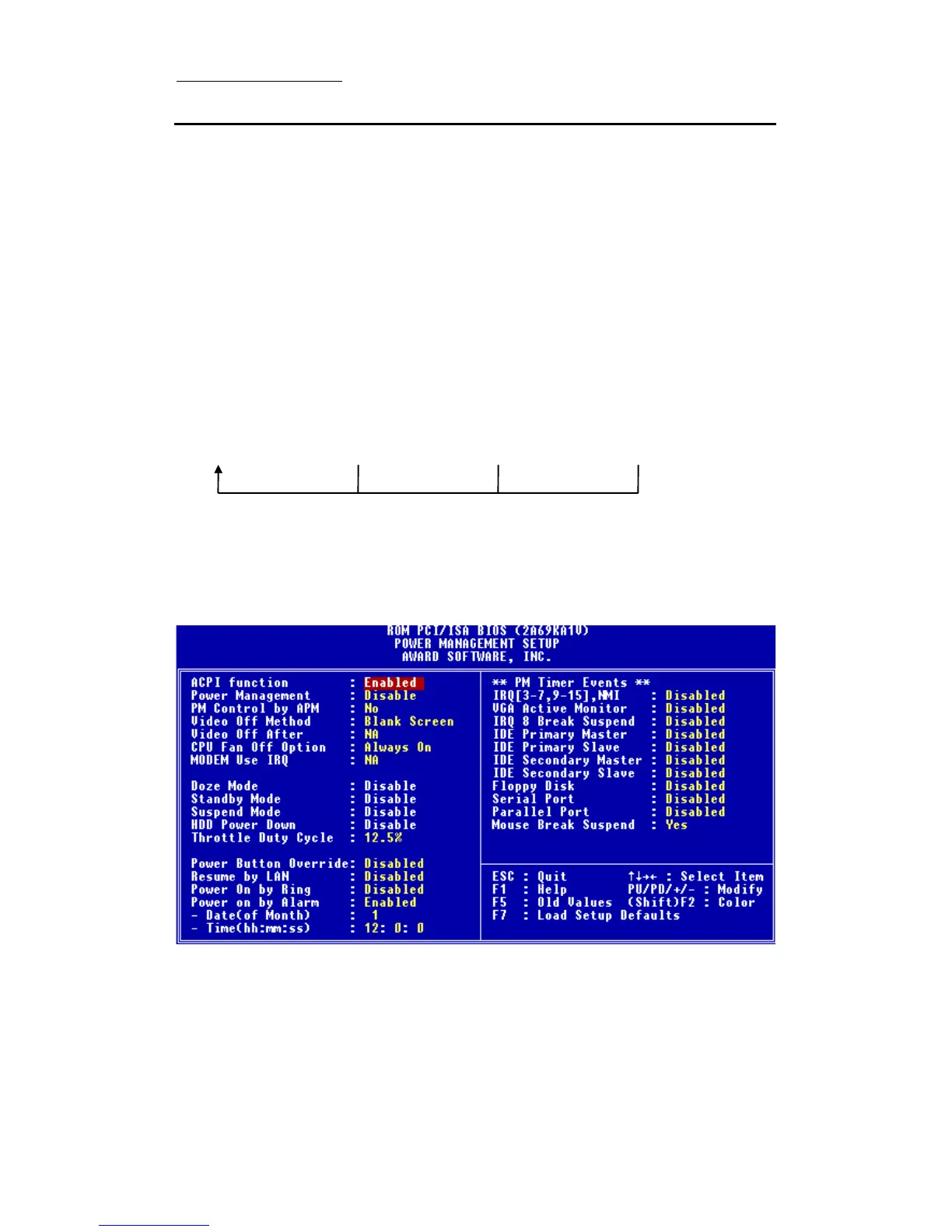1. In the Main Menu, select "Power Management Setup" and press "Enter". The