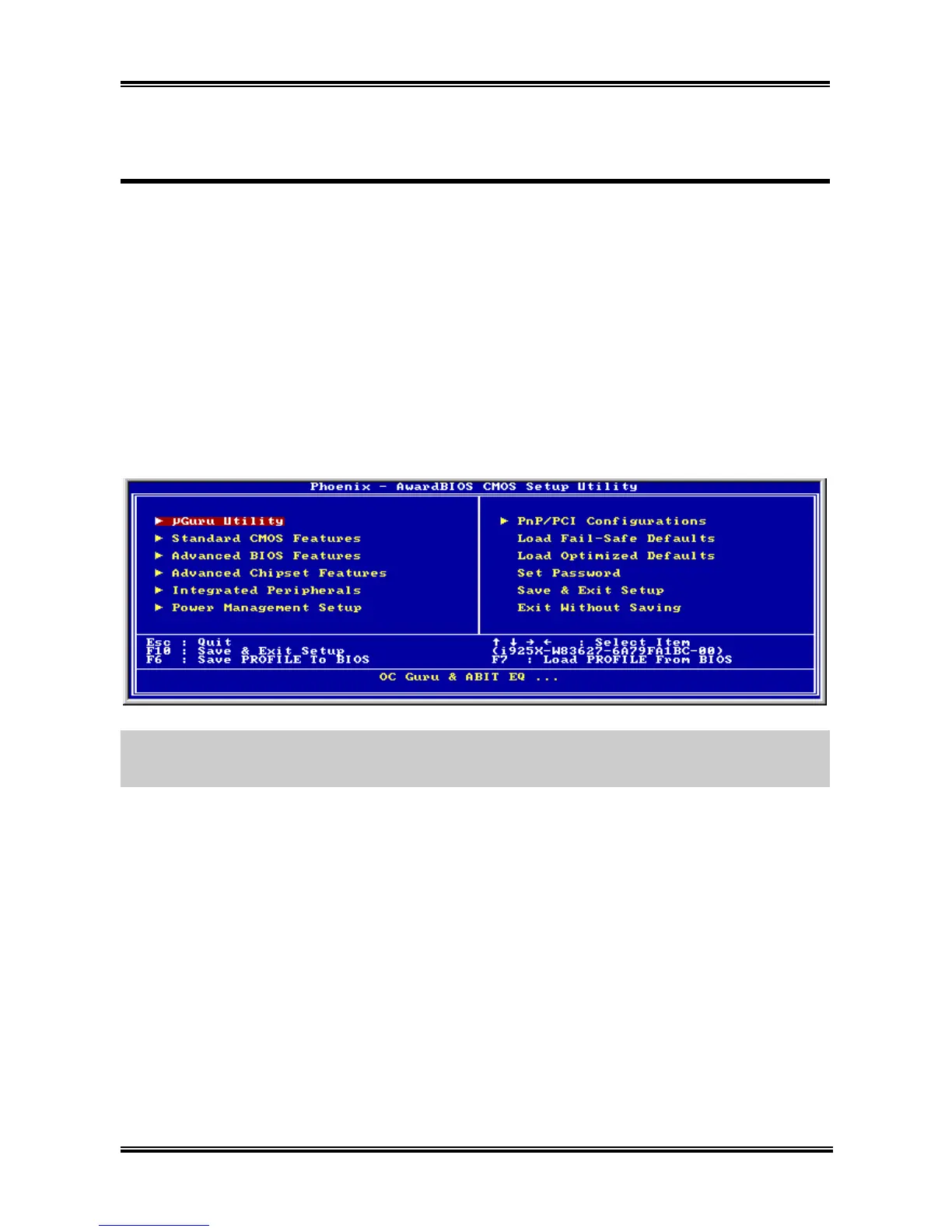 After pressing <Del> key, the main menu screen appears.