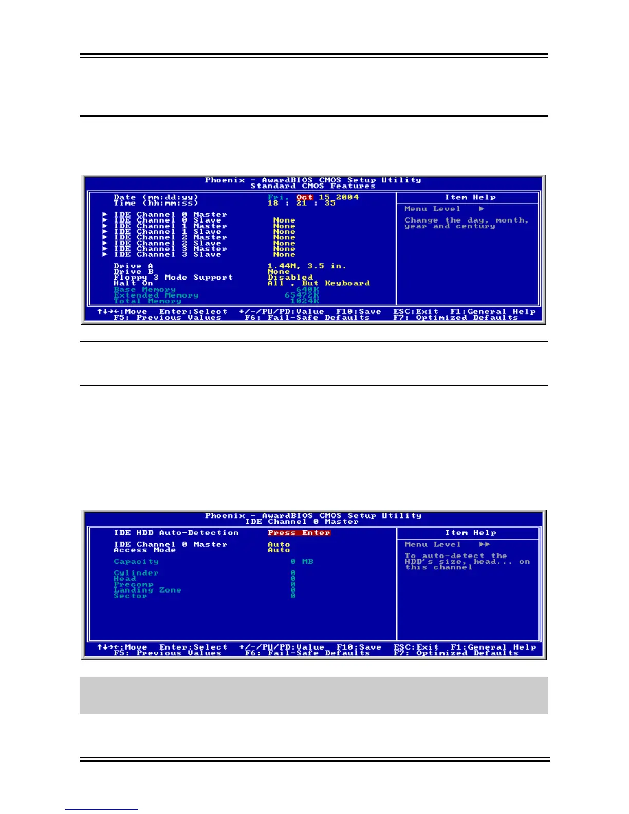 NOTE: The items “IDE Channel 2 Master/Slave” and “IDE Channel 3 Master/Slave” appear only when