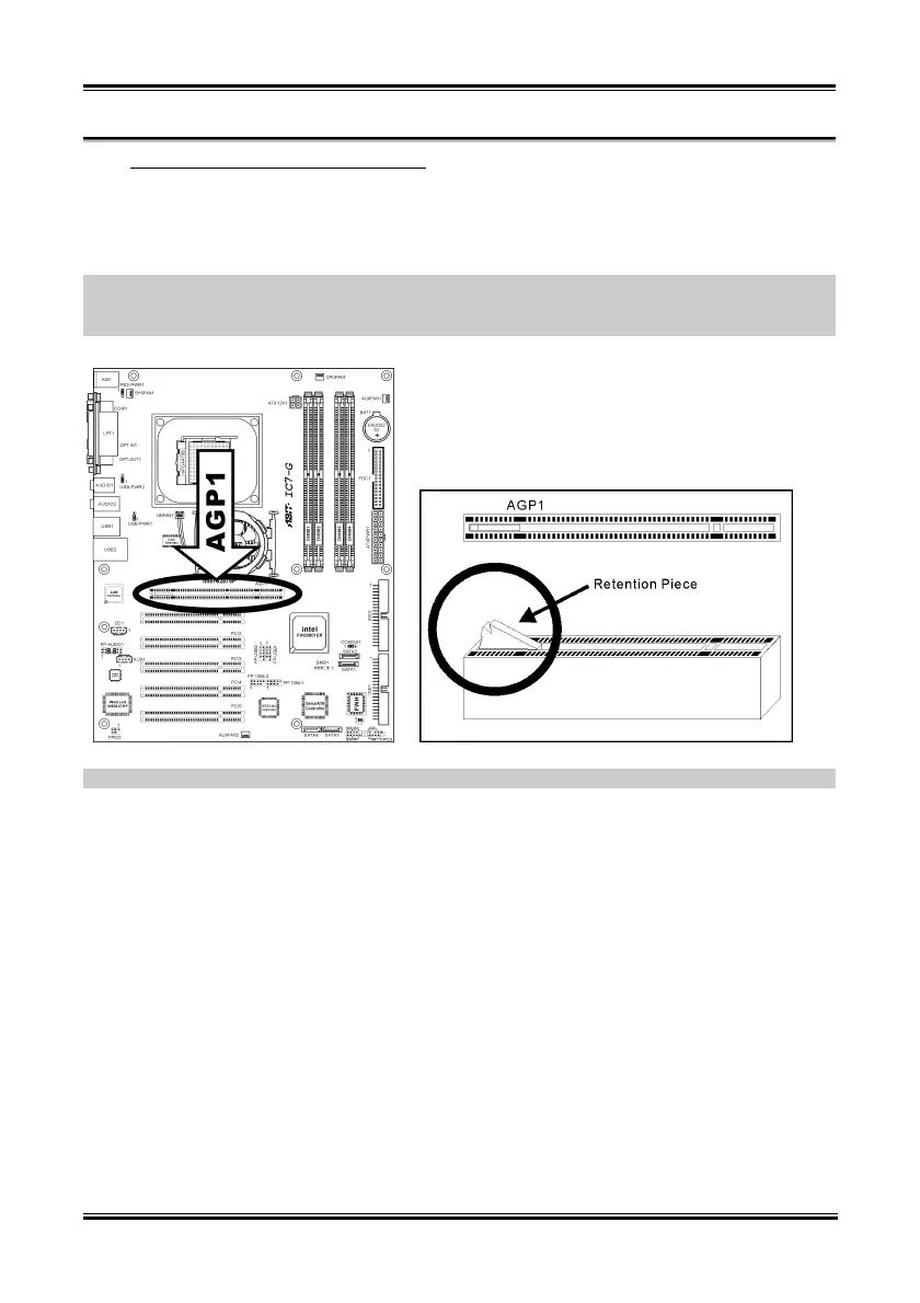 To install an “AGP Pro 50” compliant card, the small plastic retention piece located in the AGP1 slot
