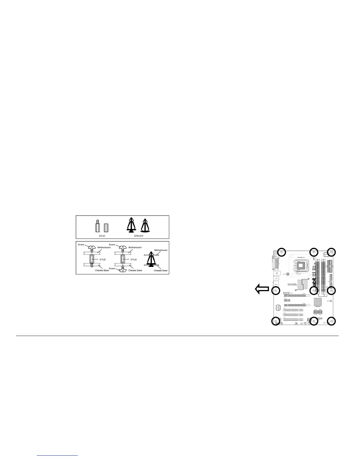 1. Locate all the screw holes on the motherboard and the chassis