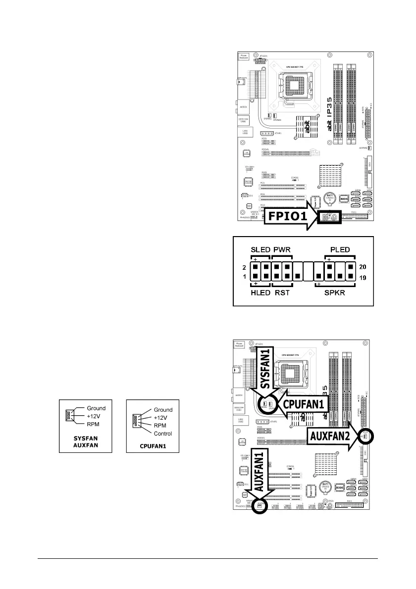※ These fan connectors are not jumpers. DO NOT place jumper caps on these