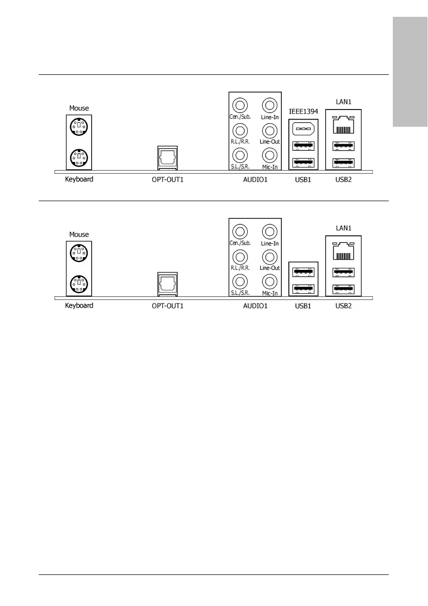 USB1/USB2: Connects to USB devices such as scanner, digital speakers, monitor, mouse,