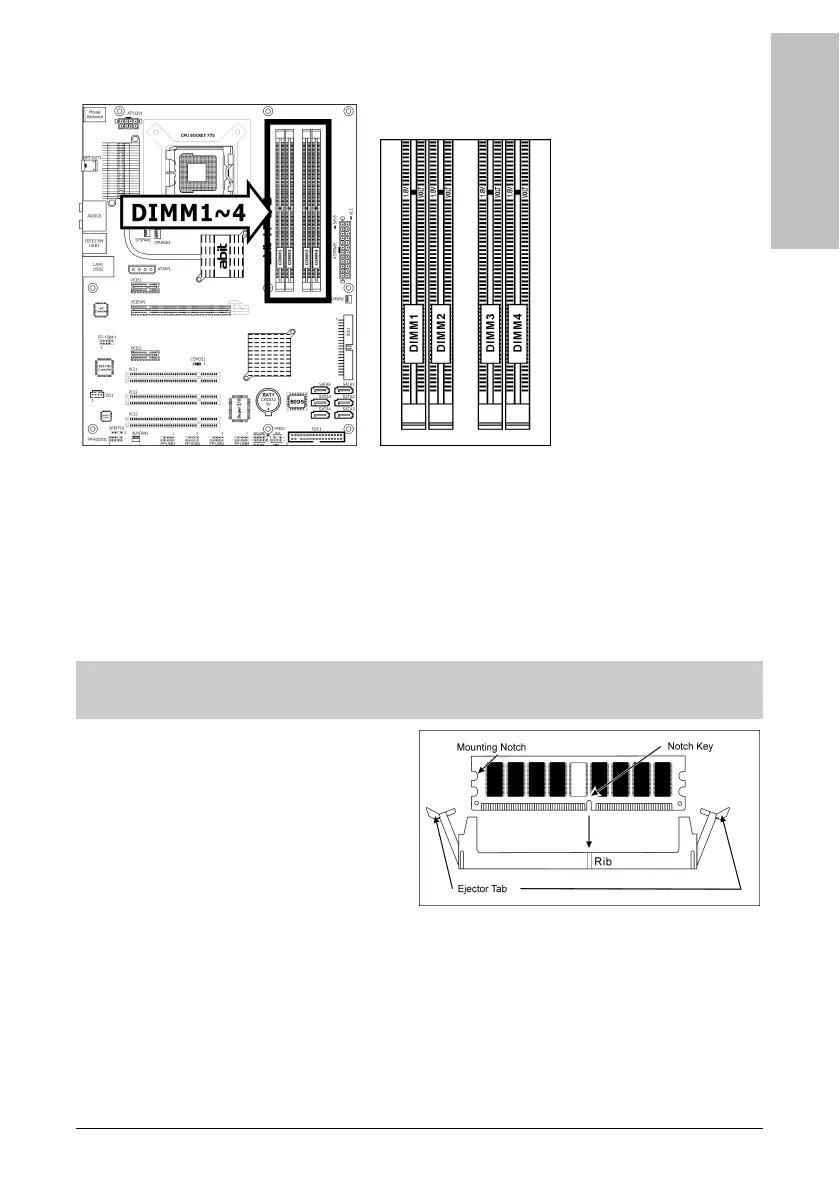 automatically snap into the mounting notch. Do not force the DIMM module in with extra