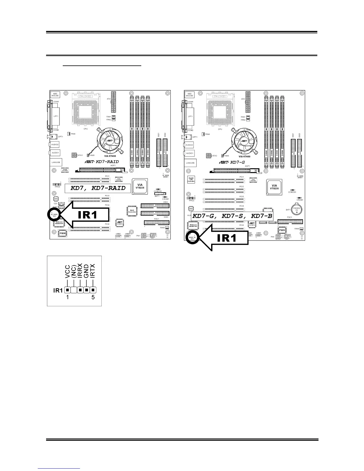 This header connects to an optional IR device attached to chassis. This motherboard supports standard IR