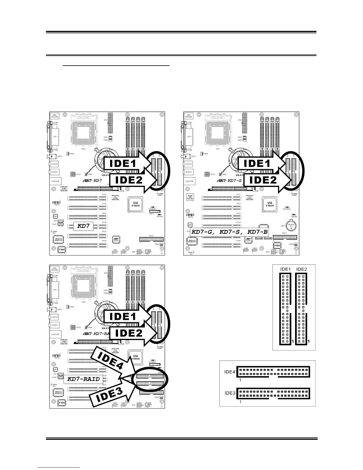 This motherboard provides two IDE ports to connect up to four IDE drives at Ultra ATA/133 mode by