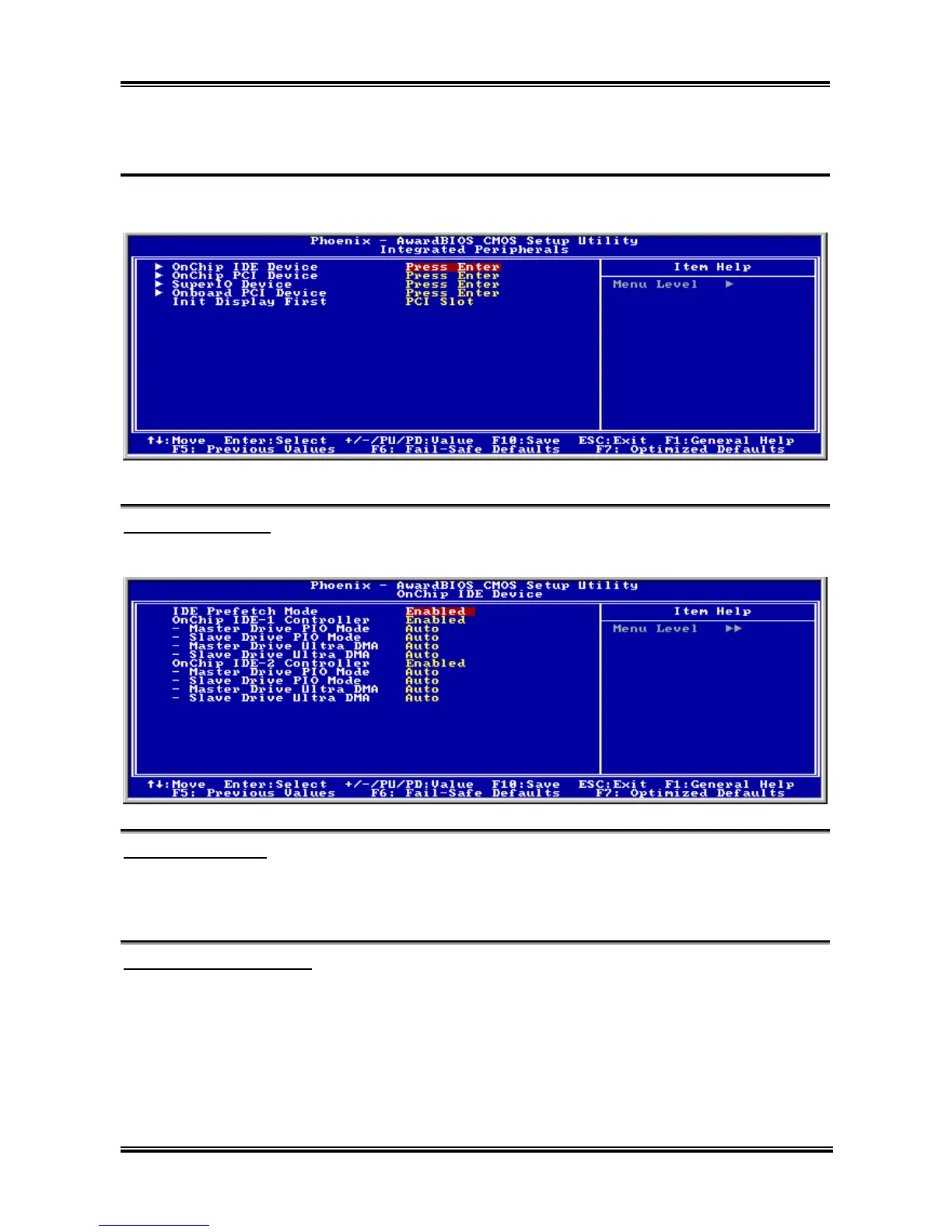 Press <Enter> key to enter the OnChip IDE Device menu.