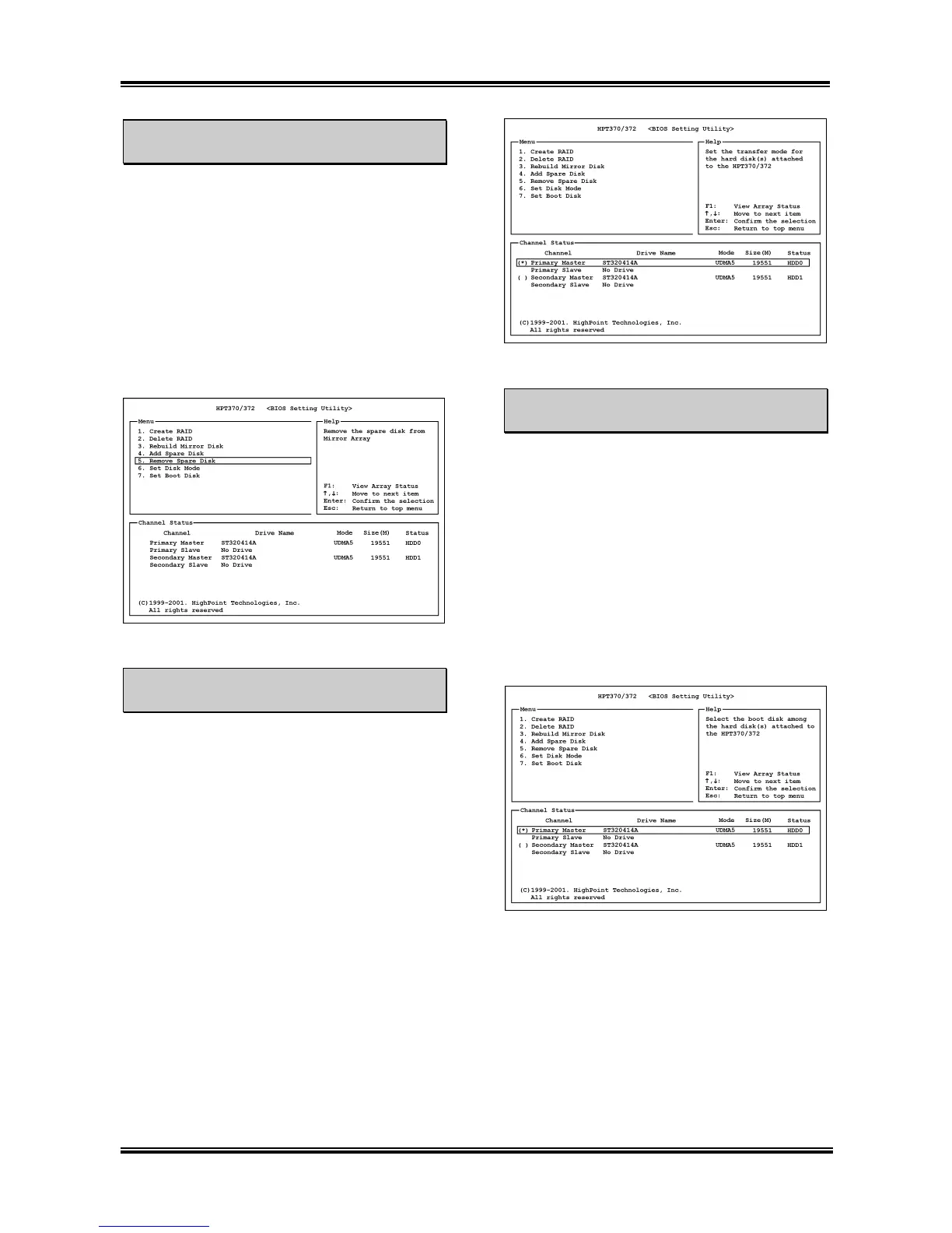 1. Select “5. Remove Spare Disk” in the Main