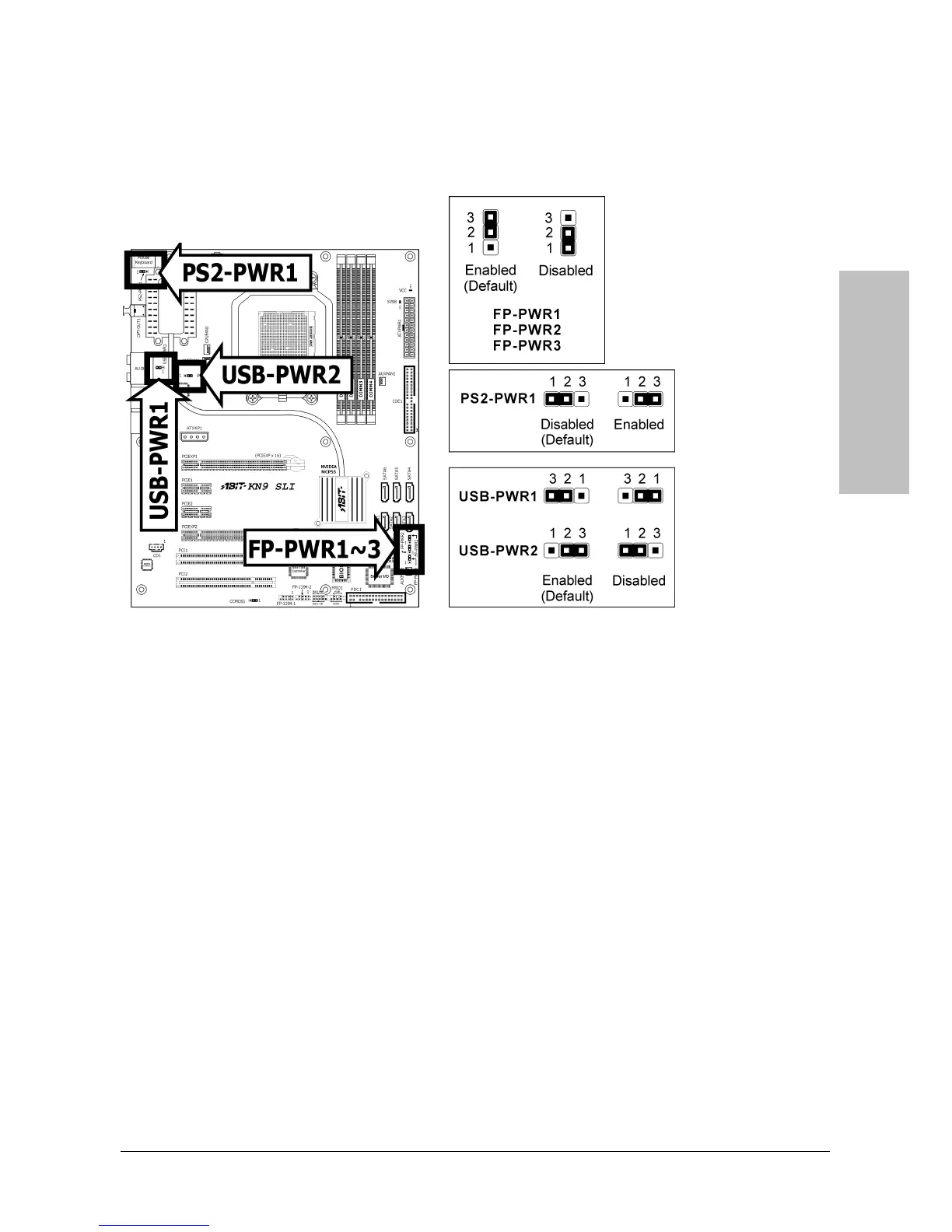Pin 2-3 shorted (Default): Enable wake-up function support at FP-USB2 port.