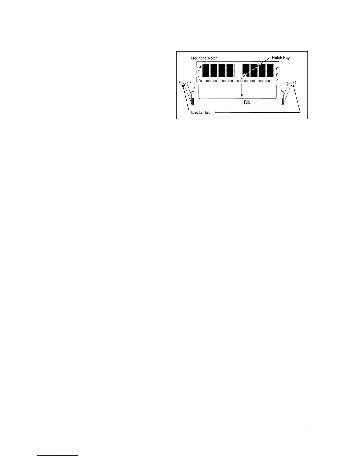 automatically snaps into the mounting notch. Do not force the DIMM module in with extra