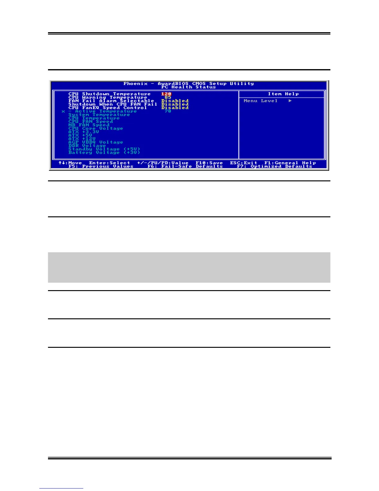 This item selects the CPU’s warning temperature limit. Once the system has detected that the CPU’s