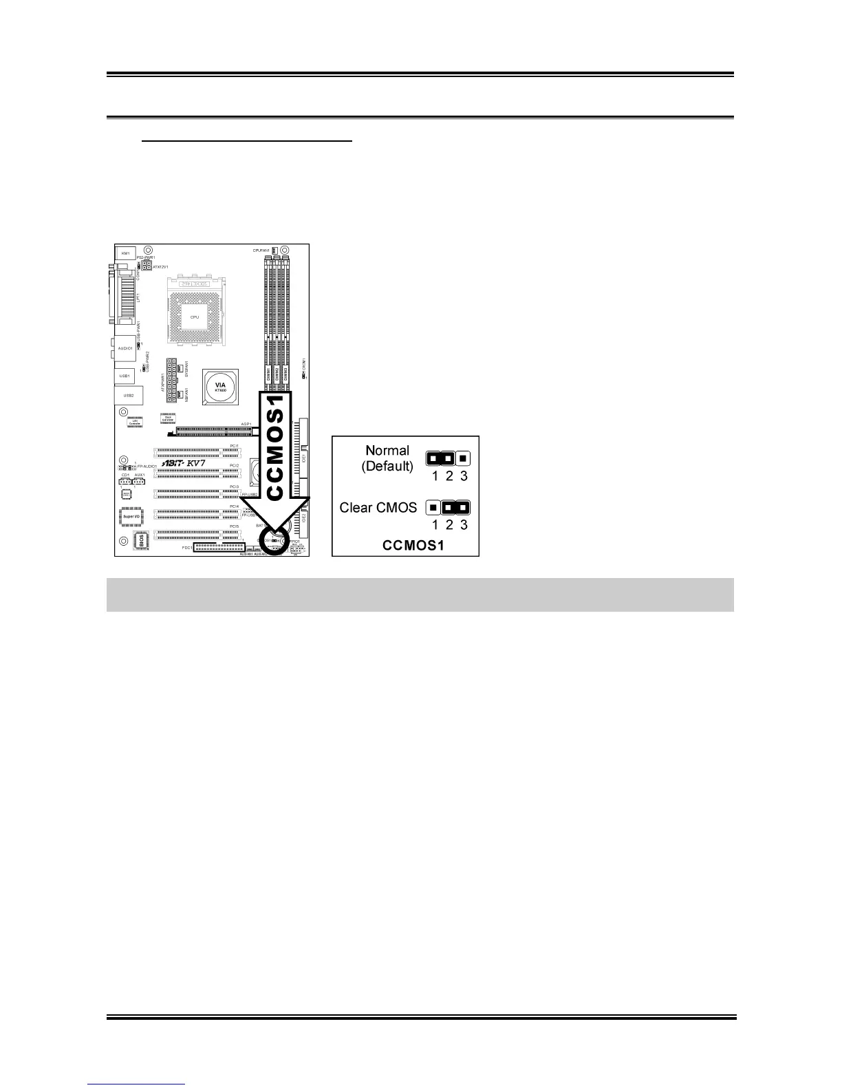 • Pin 2-3 shorted: Clear CMOS memory.