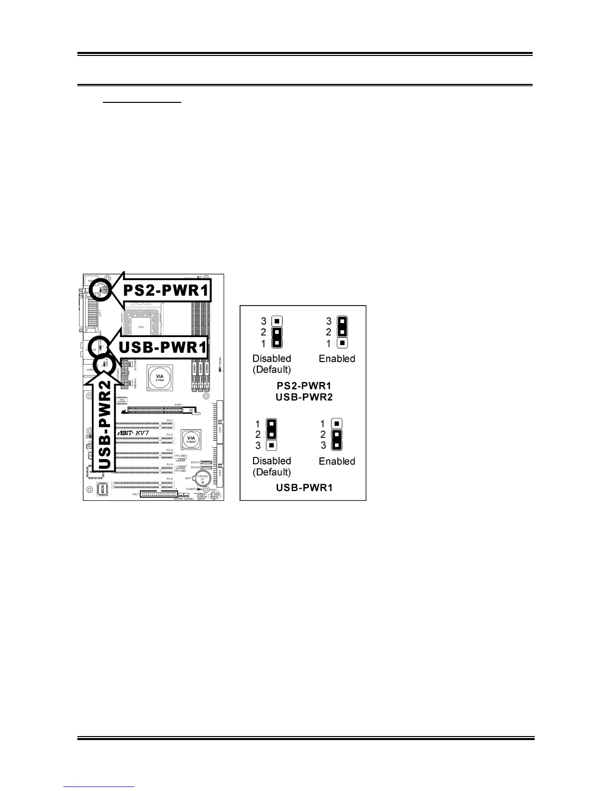 Pin 1-2 shorted (default): Disable wake-up function support at Keyboard/Mouse port.