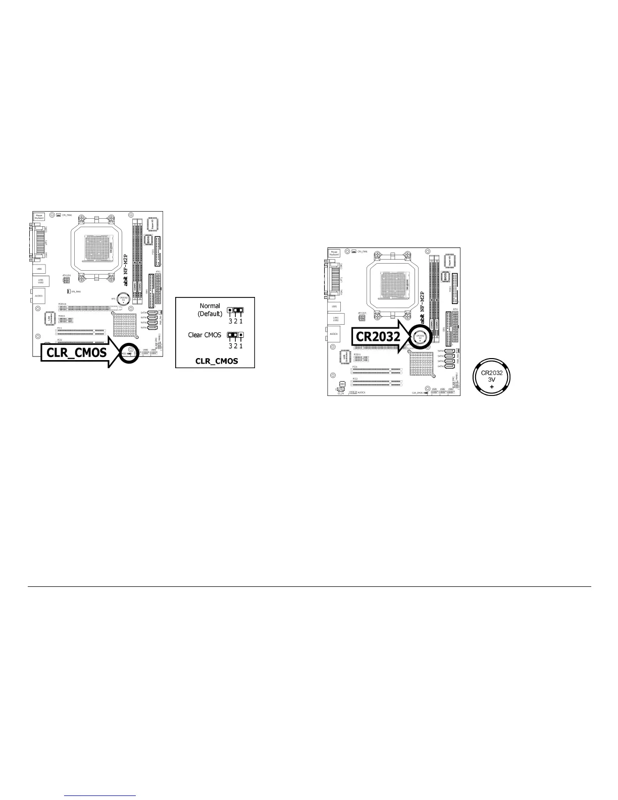 • Pins 2 and 3 shorted: Clear CMOS memory.