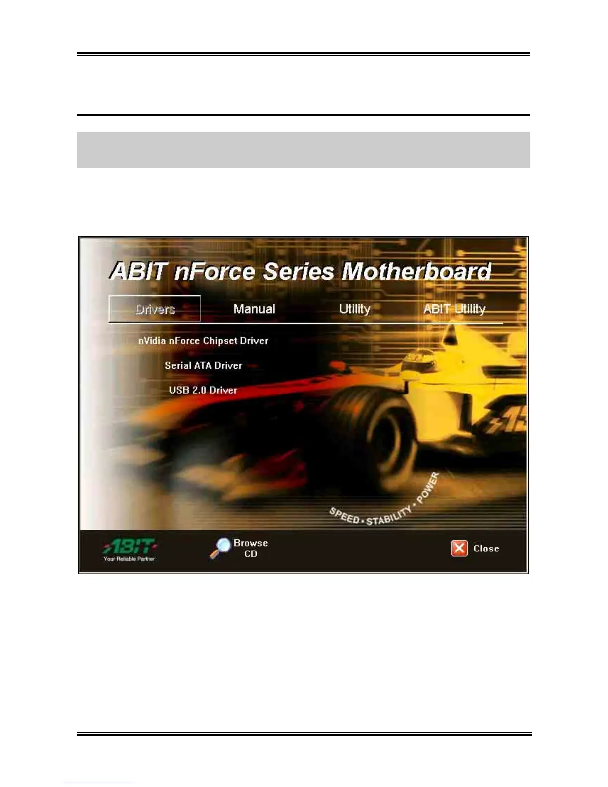 execution file at the main directory of this CD to enter the installation menu. The following screen