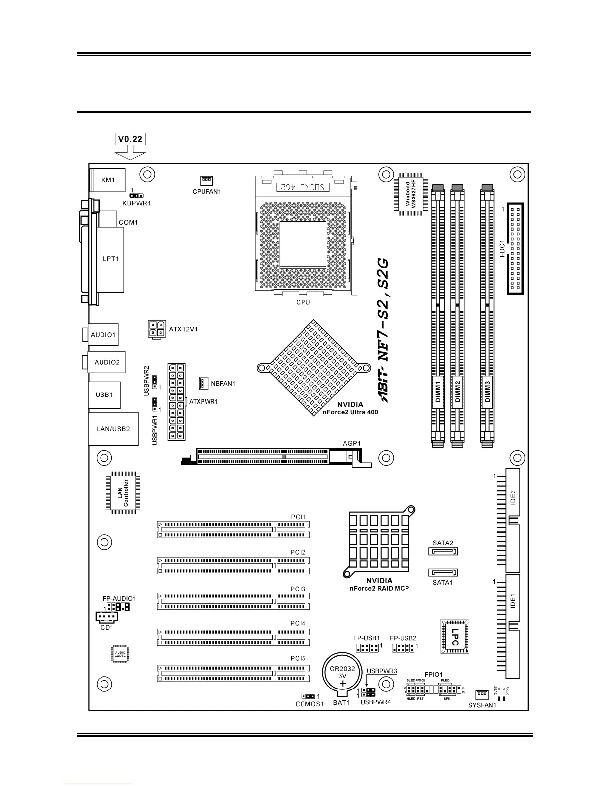 Abit NF7 - Layout Diagram (NF7-S2;NF7-S2 G, Ver. 0.22)