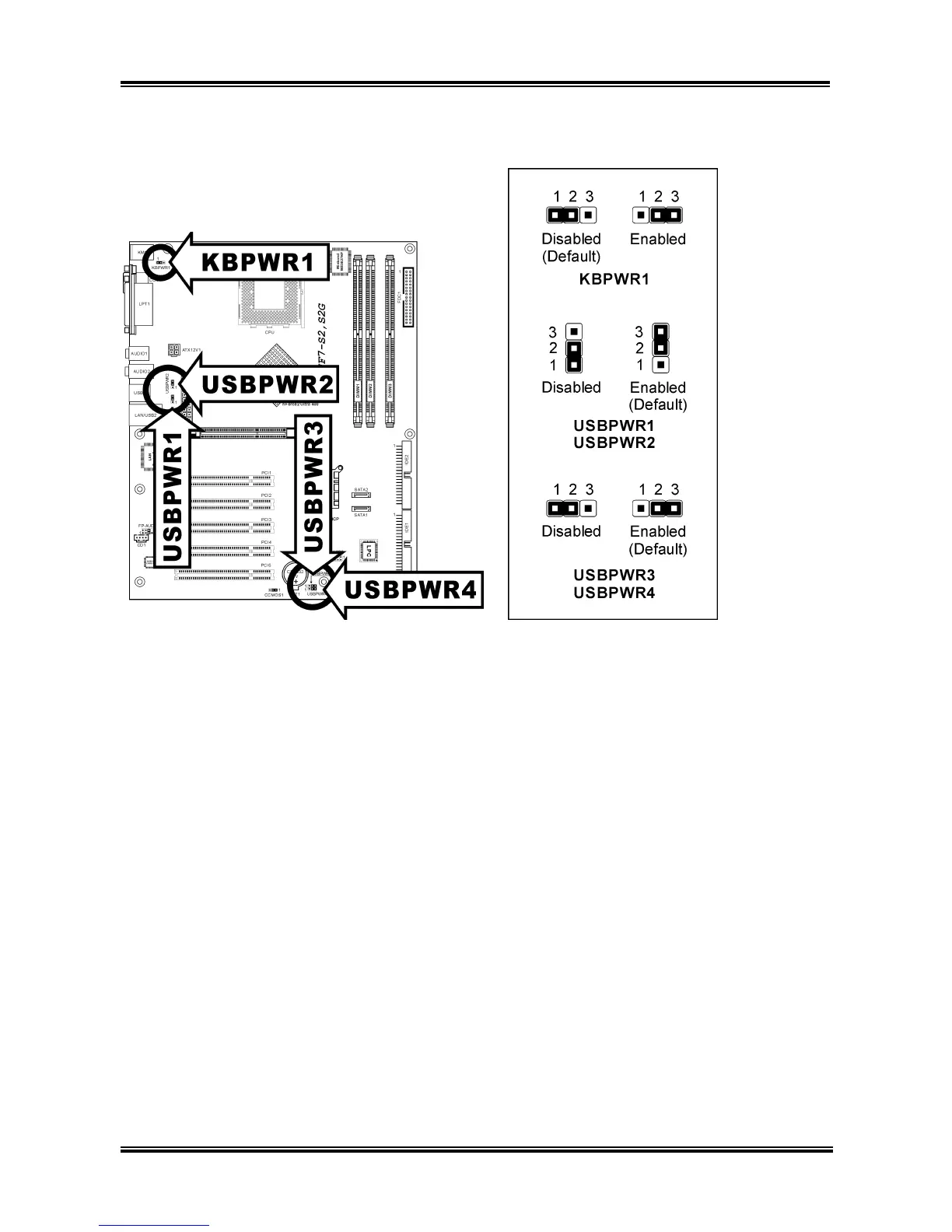 Pin 1-2 shorted (default): Disable wake-up function support at Keyboard/Mouse port.