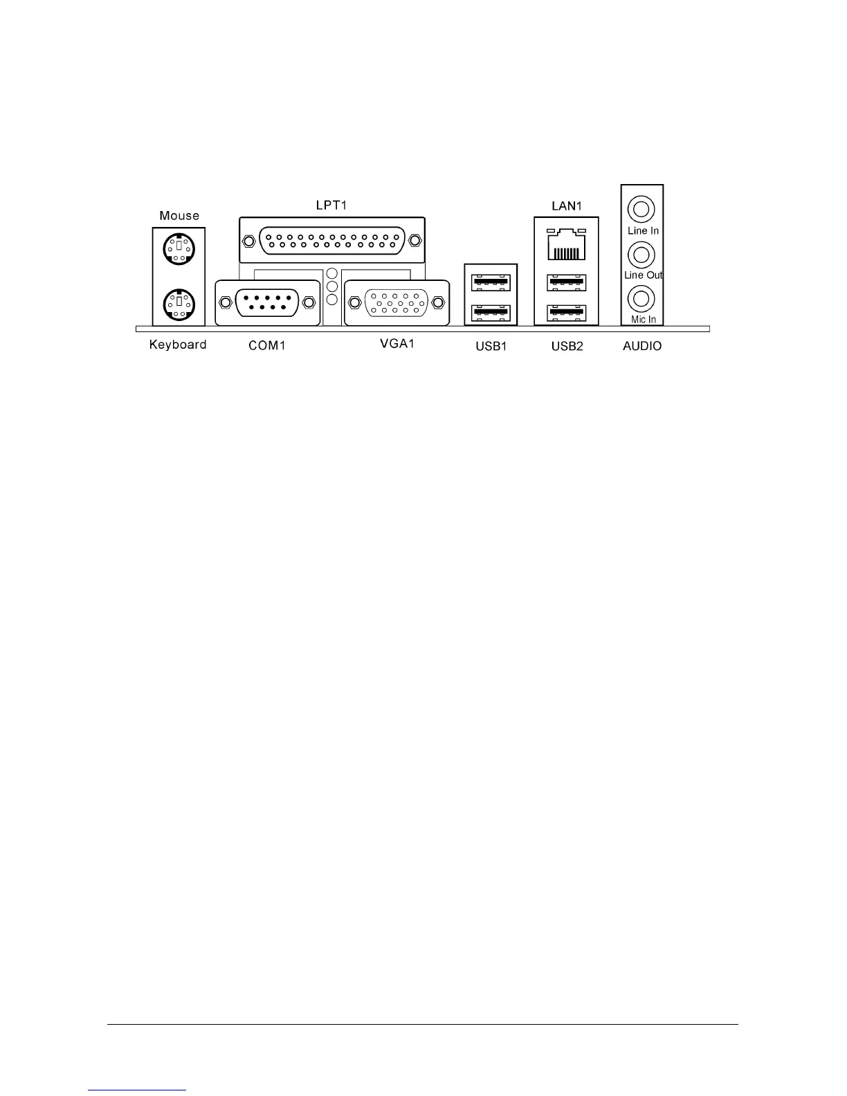 • LPT1: Parallel port connector.
