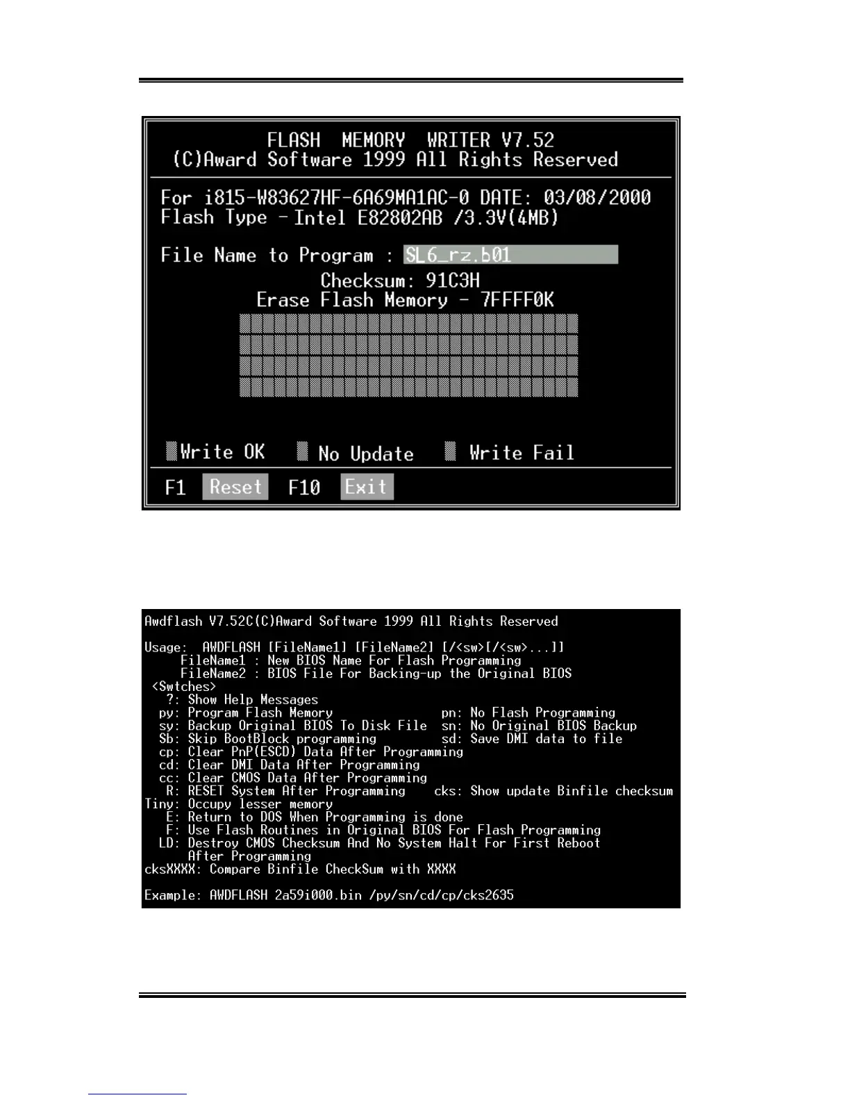 Figure M-3. Award Flash Memory Writer V7.52C Flash Commands Screen