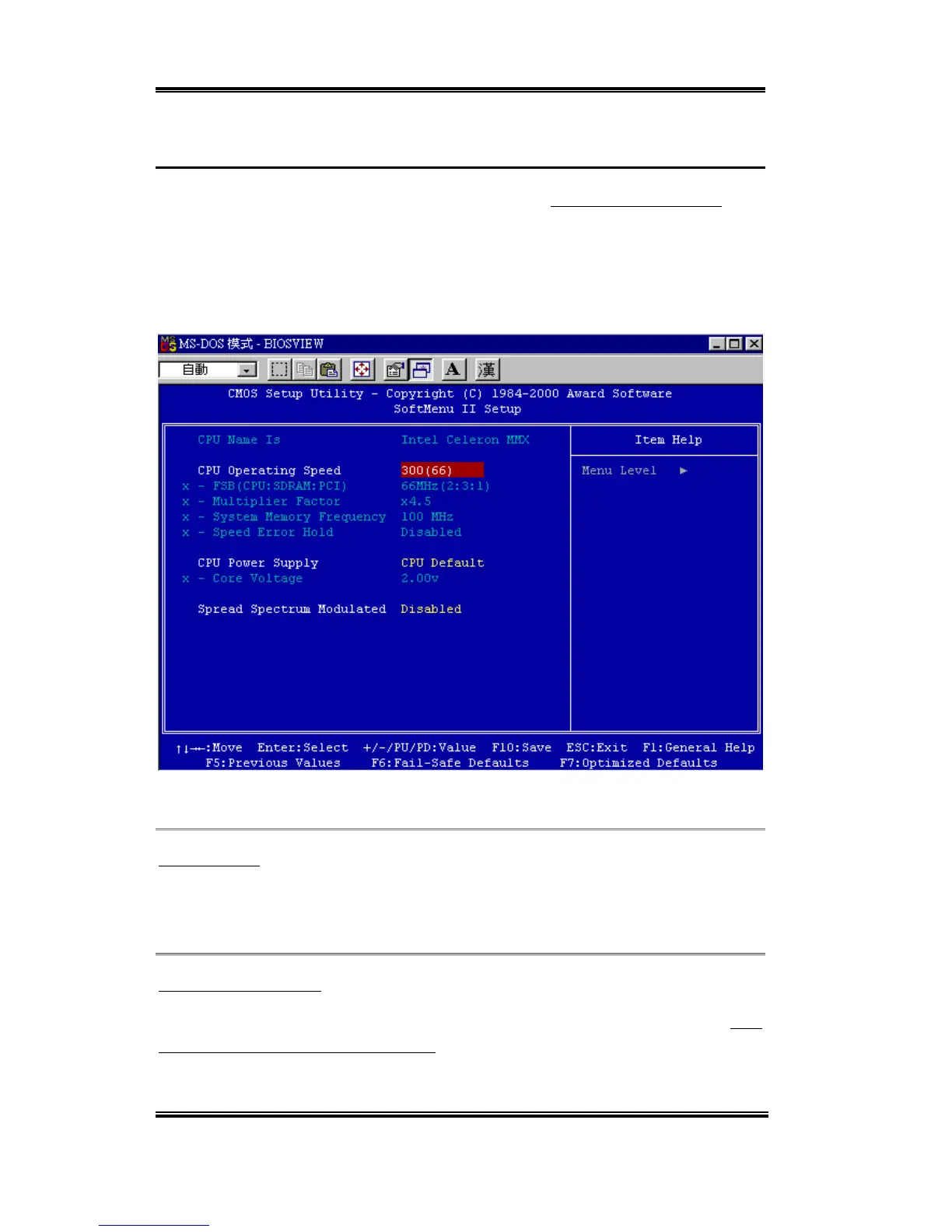 This option sets the CPU speed. In this field, the CPU speed is indicated like this: CPU