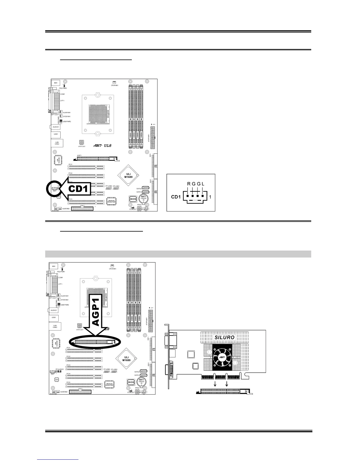 Abit UL8 - Internal Audio Connectors; Accelerated Graphics Port Slot
