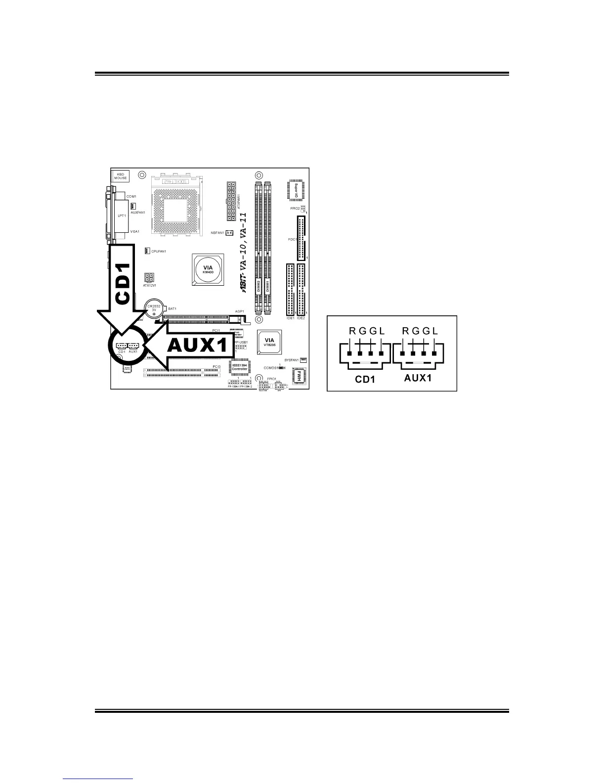 These connectors connect to the audio output of internal CD-ROM drive or add-on