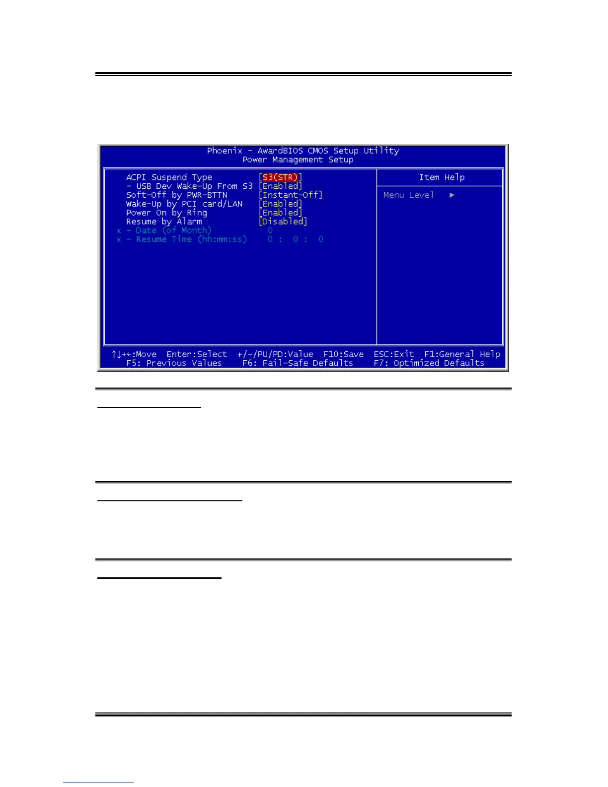 [S3(STR)]: Enables the Suspend to RAM function.