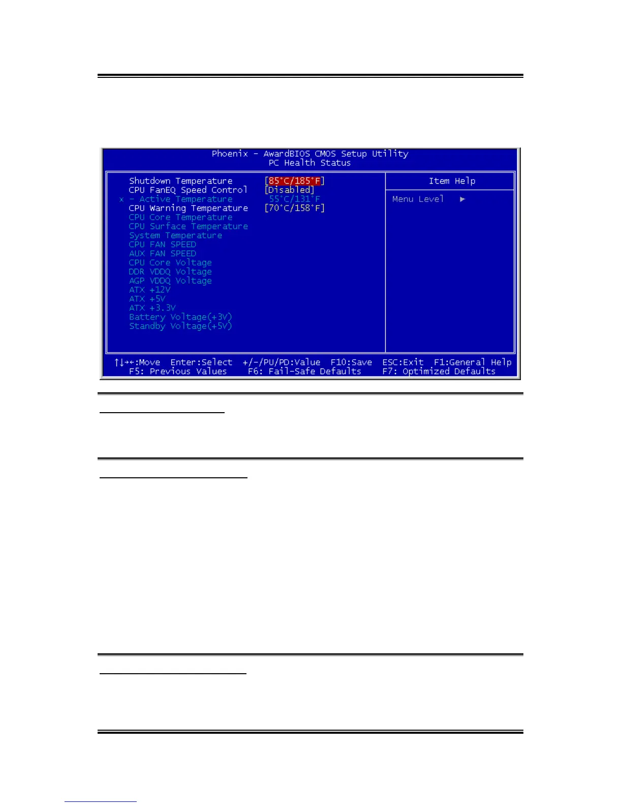 This item sets the temperature limit that would activate the function of “CPU FanEQ
