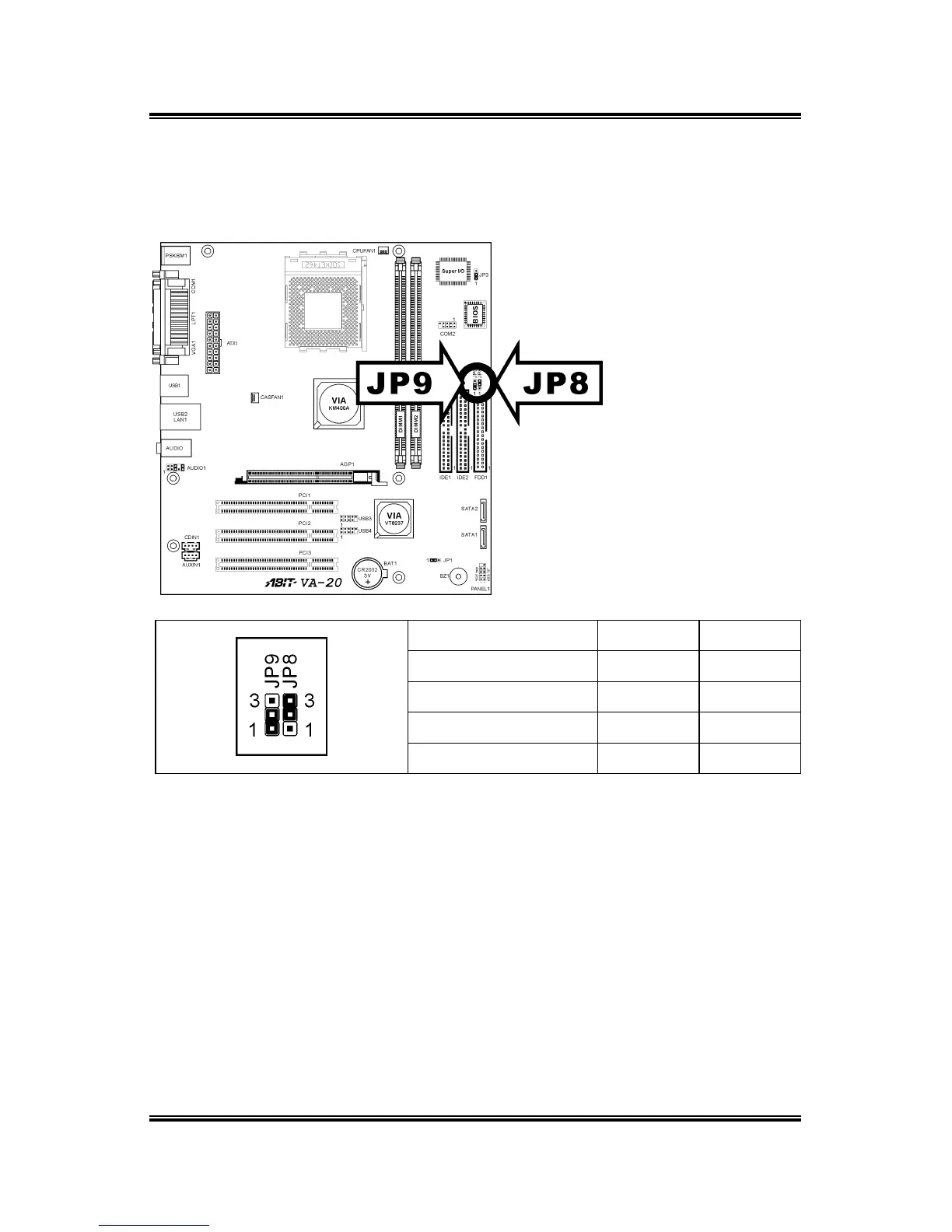 Abit VA-20 - 2.5.5. CPU FSB Frequency Selector (JP8, JP9)