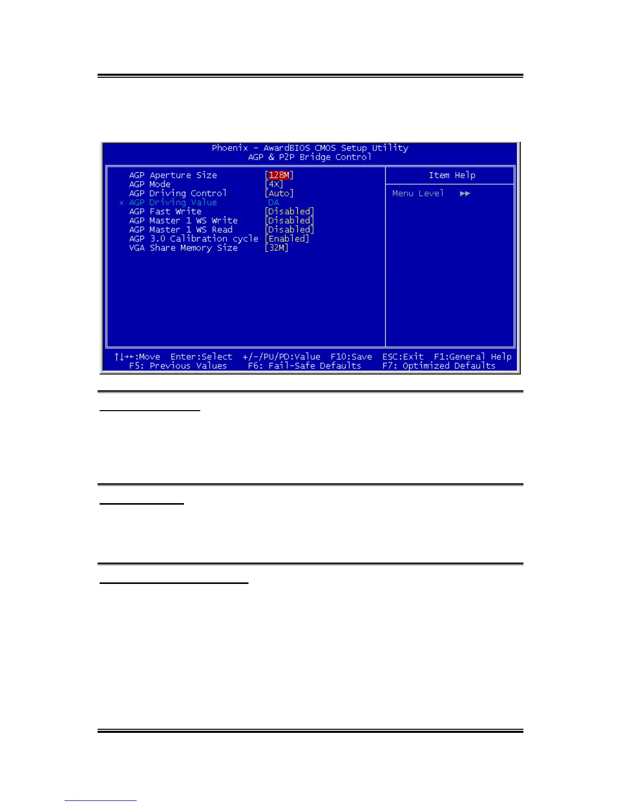 When AGP Driving Control is set to Manual, use this item to set the AGP current