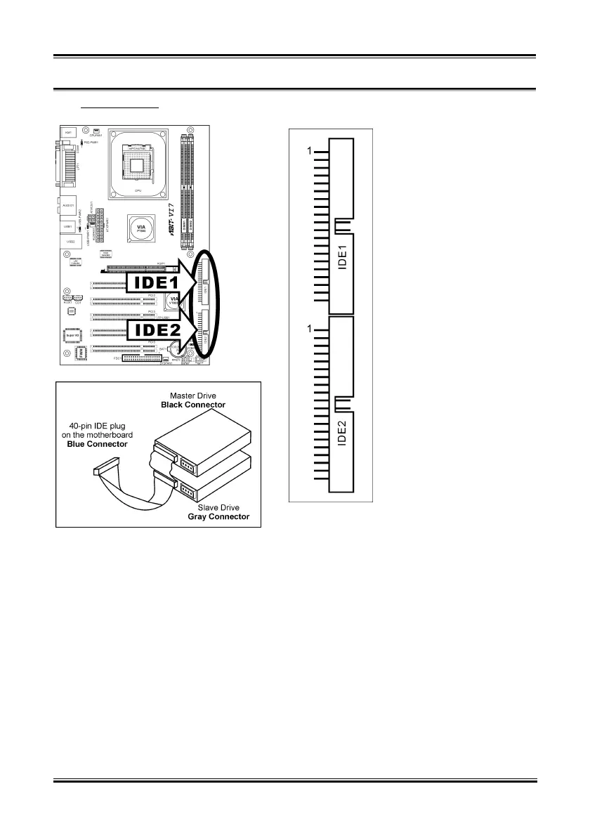 This motherboard provides two IDE ports to connect up to four IDE drives at Ultra ATA/100 mode by