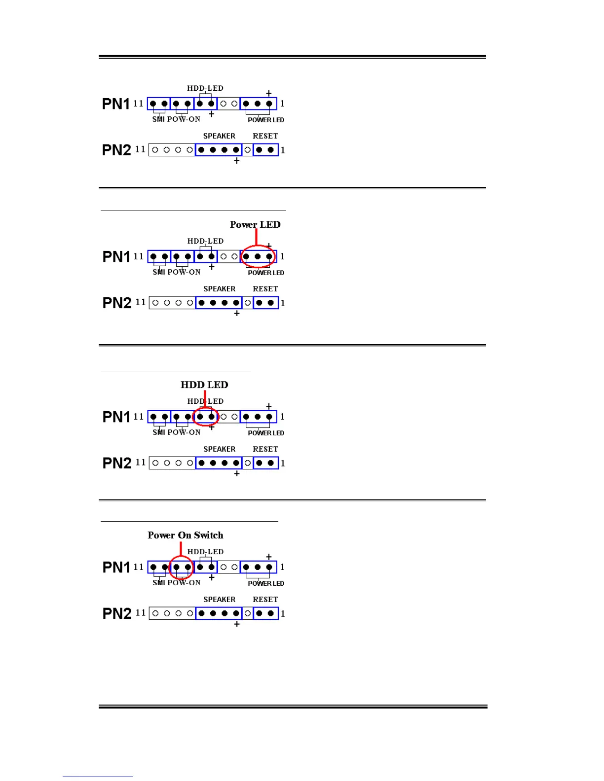 PN1 (Pin 1-2-3-4-5): Power LED Headers