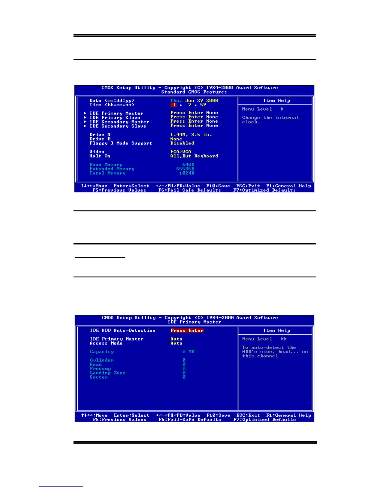 IDE Primary Master / Slave and IDE Secondary Master / Slave: