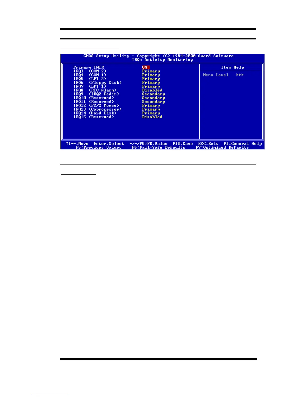 Figure 3-7D. IRQs Activity Monitoring Setup Menu