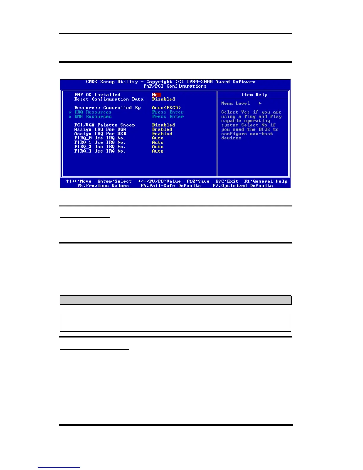 PNP/PCI Configurations Setup Menu