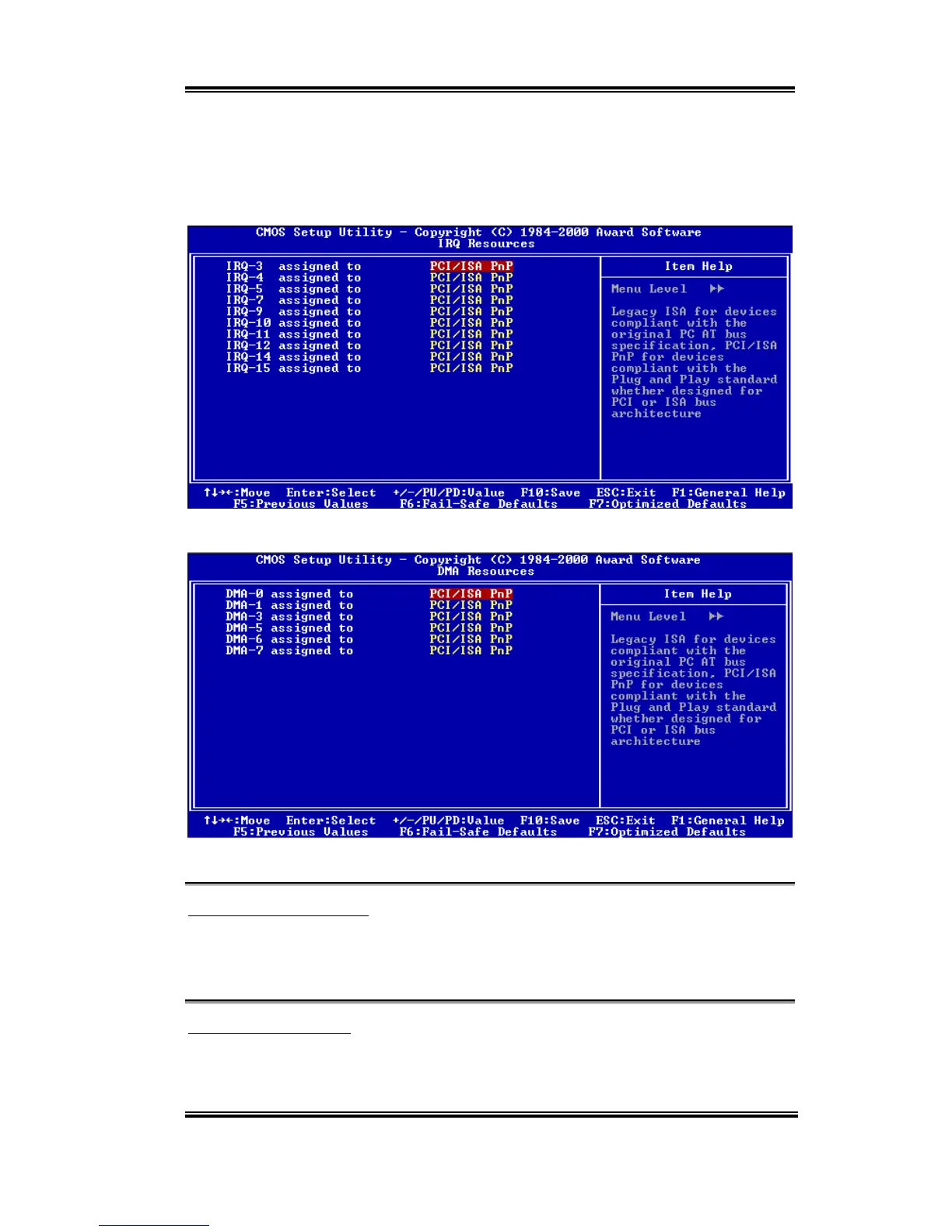 request (IRQ) and DMA assignment fields disappear, as the BIOS automatically assigns