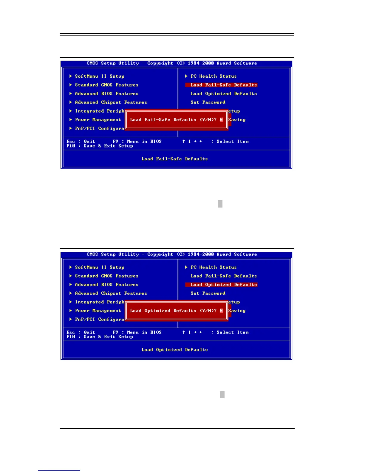 Load Fail-Safe Defaults (Y/N) ? N