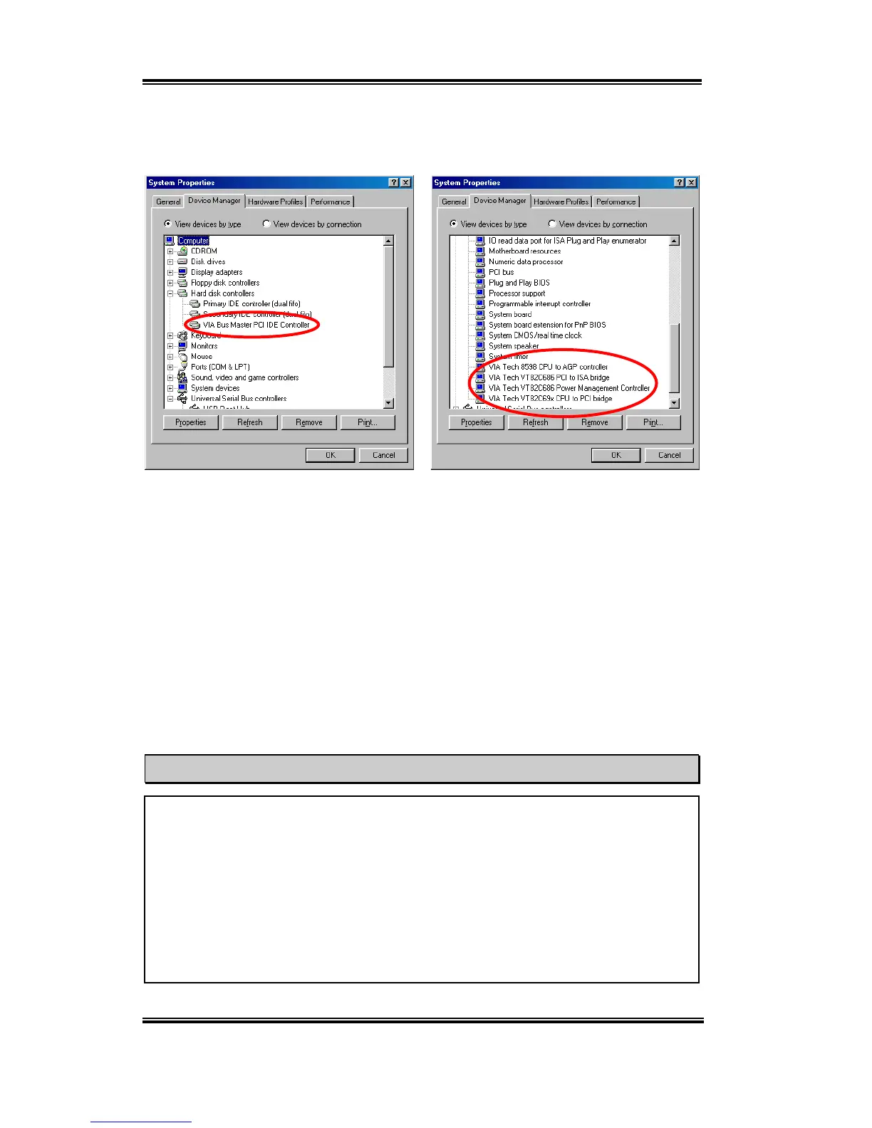 that identify the VIA chipset and controller.