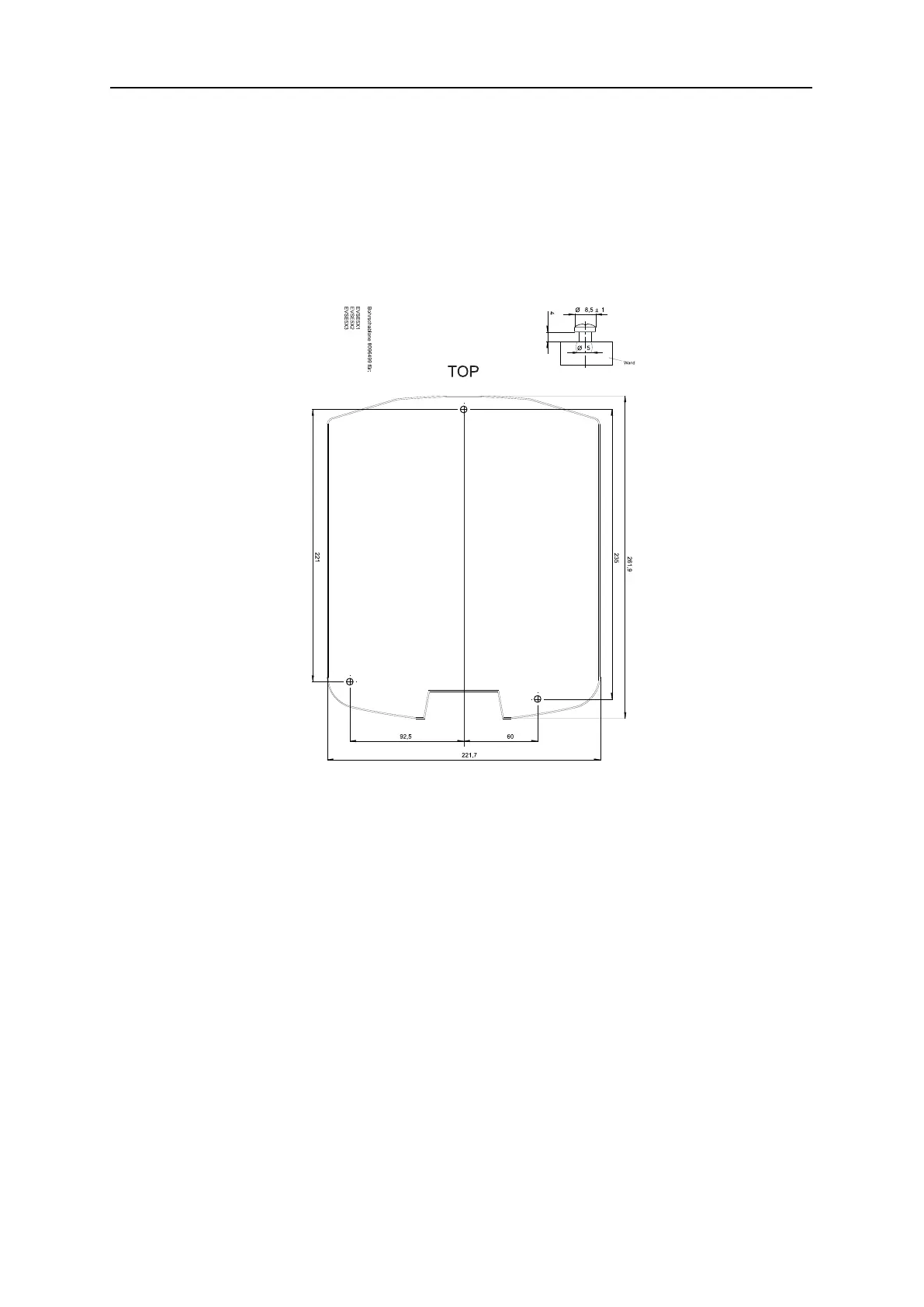 • The recommended shaft diameter for the fixings is 5 mm, with the drill hole diam-