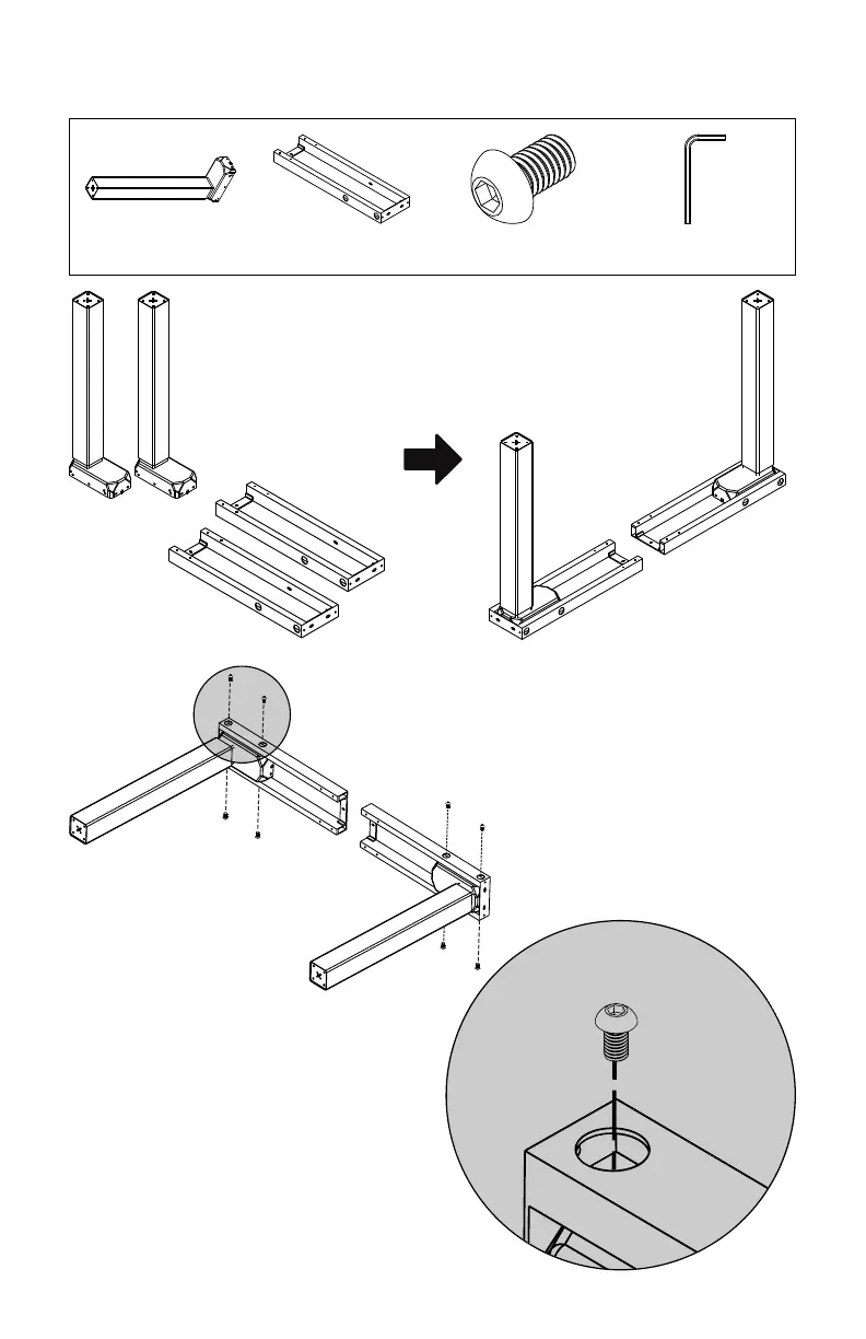 Attach lifting columns to frame ends to create legs
