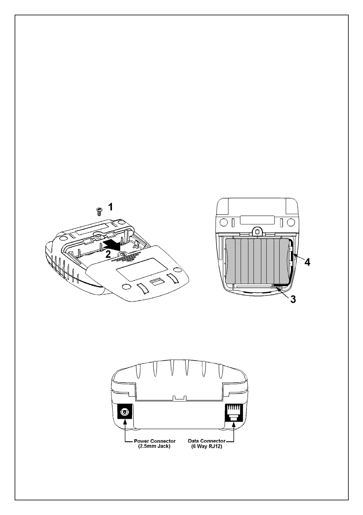 1. Remove the screw from the battery compartment door (if fitted),