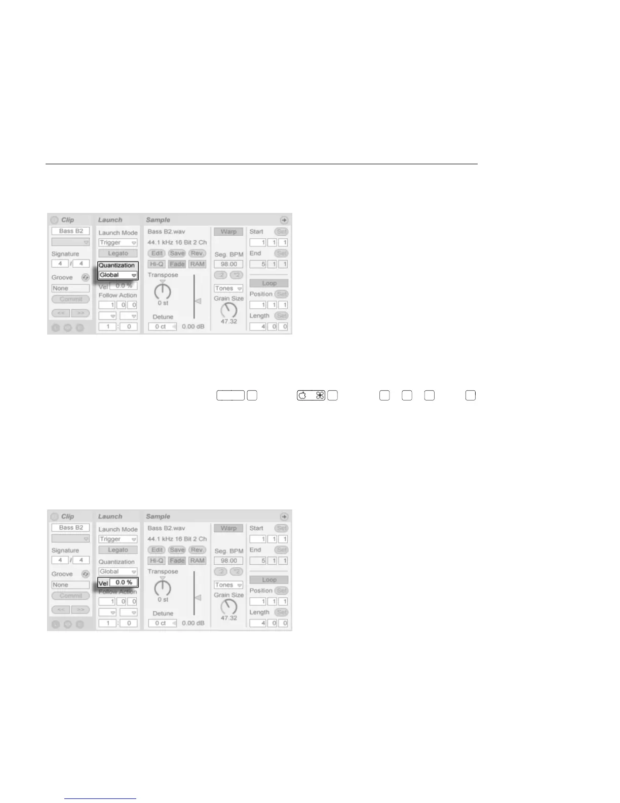 The Clip Quantization chooser lets you adjust an onset timing correction for clip triggering.